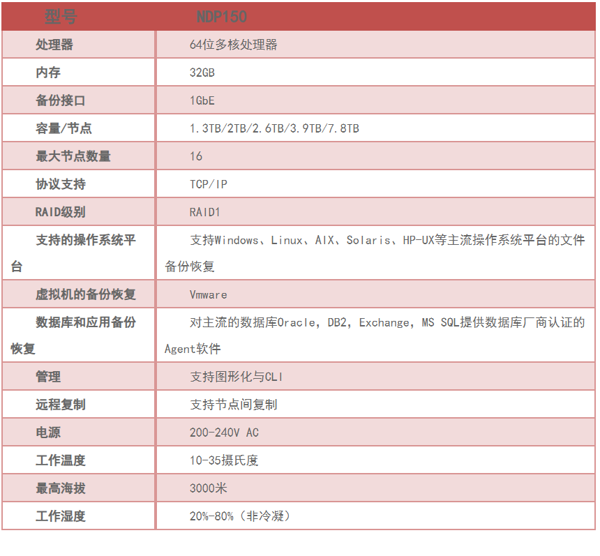 PA视讯官网 NCS NDP100(简称NDP100)系列是集备份服务器、备份介质、备份软件于一体的产品,集成的全局客户端重复数据消除技术,使 VMware 环境、远程办公室、企业应用程序、LAN/NAS服务器以及台式机/笔记本电脑的日常完整备份变得更加方便快捷,为关键业务给予全面的数据保护。